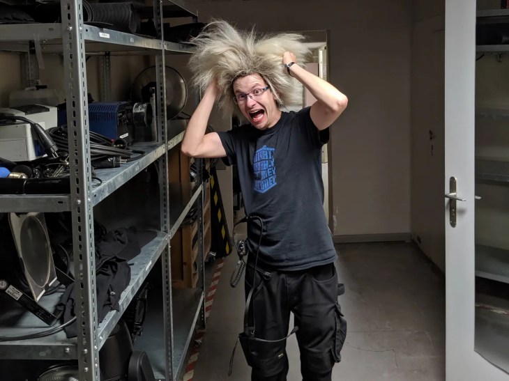 Kolja berichtet nicht nur von seinem Job als Beleuchter, sondern auch davon wie er vom Kinderschauspieler über einen USA – Aufenthalt zum Beleuchter wurde. Auf dem Bild oben seht ihr ihn hinter den Kulissen des Staatstheaters Braunschweig.